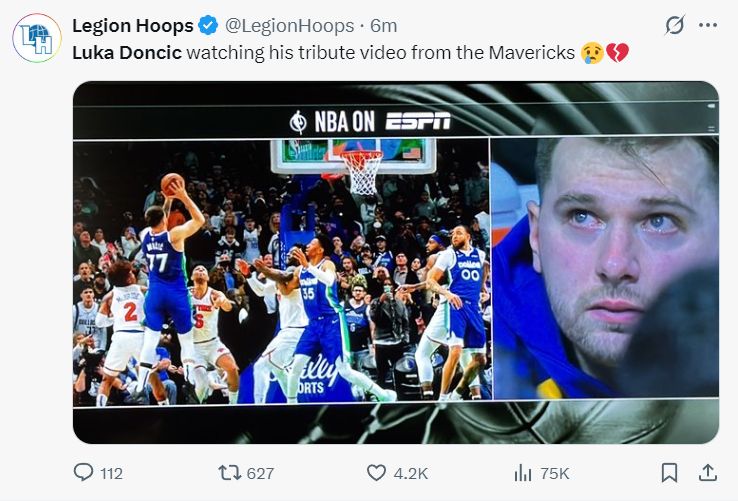 独行侠的媒体高呼心碎,看到东契奇流泪太心痛了。这个夜晚是属于东契奇的夜晚。
