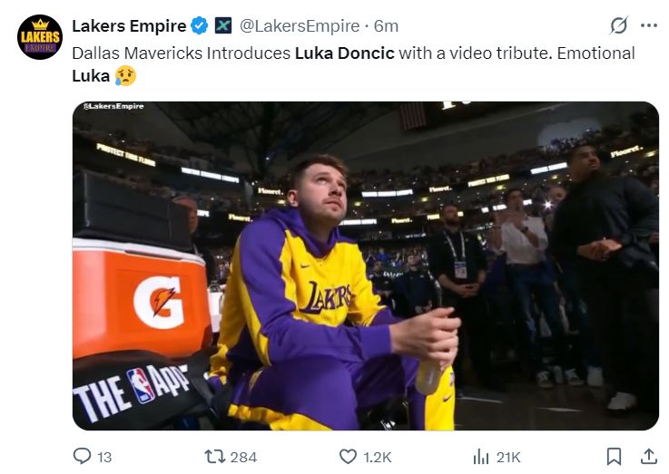 在东契奇看到致敬视频落泪后,现场的球迷也开始鼓噪起来。
