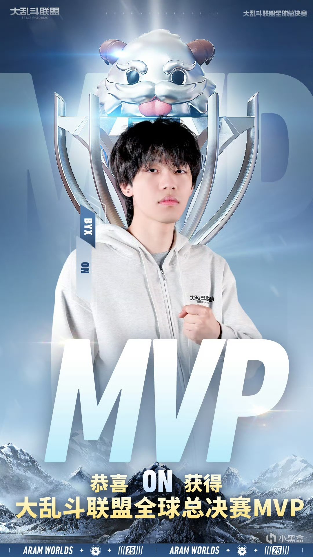 今天ON选手连续两把拿下波比,帮助BYX成功捧杯的同时也拿下了MVP,成为了首届大乱斗联盟全球总决赛的MVP,这个荣誉虽然没有什么含金量,但是也为ON的职业生涯荣誉增添了一抹不一样的光彩。