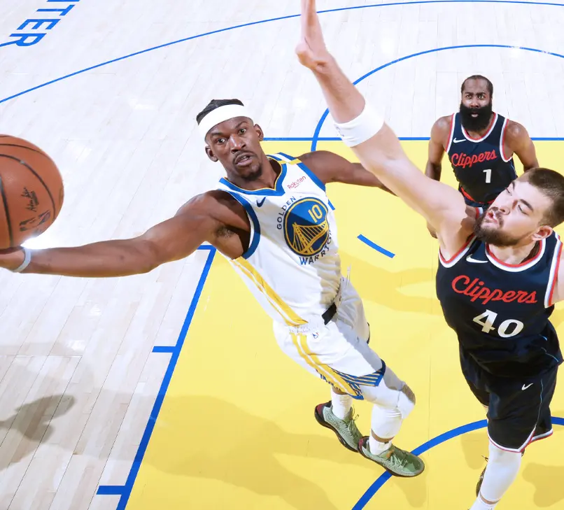 第一节比赛波杰姆斯基罚球2中2,哈登命中三分后邓恩命中三分,波杰姆斯基投篮命中后伦纳德连得4分,库里罚球2中2后哈登抛投命中,快船领先6分。暂停后勇士打出一波7-0,后面哈登得分止血,接下来的比赛两队打得激烈比分交替上升,但末尾阶段勇士打出一波13-1,第一节比赛结束勇士反超8分。第二节比赛勇士打出一波4-0,后面伦纳德命中三分,穆迪反击得分后博格丹命中三分,希尔德命中三分后伦纳德打板得分,随后快船打出一波7-2追到4分。暂停后邓恩、鲍威尔、哈登帮助快船反超1分,巴特勒得分止血,祖巴茨扣篮得分后库里连得5分,末尾阶段快船打出一波9-3,半场比赛结束快船领先2分。